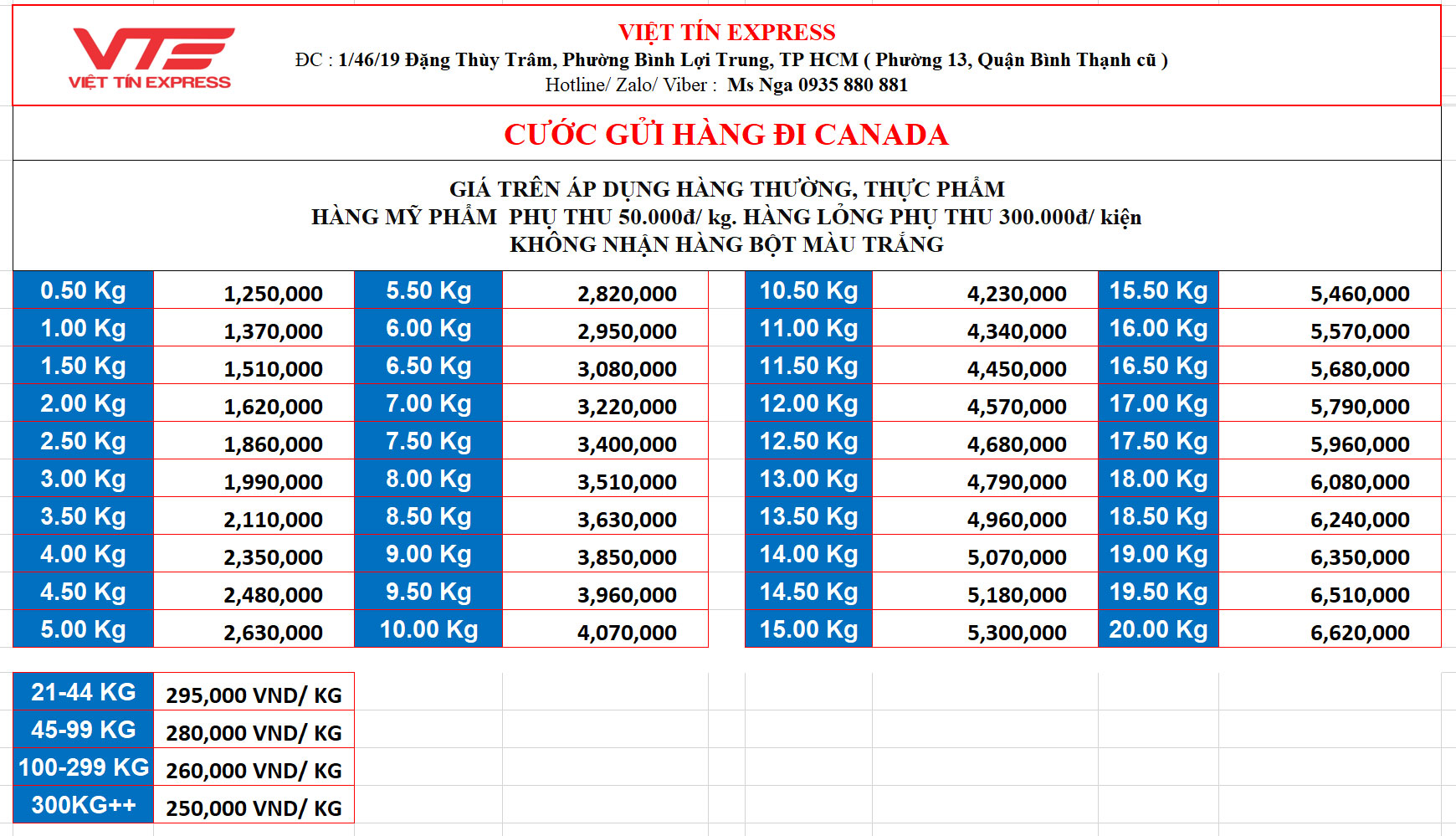 Bảng giá dịch vụ gửi hàng đi Canada giá rẻ tại TP.HCM – Việt Tín Express